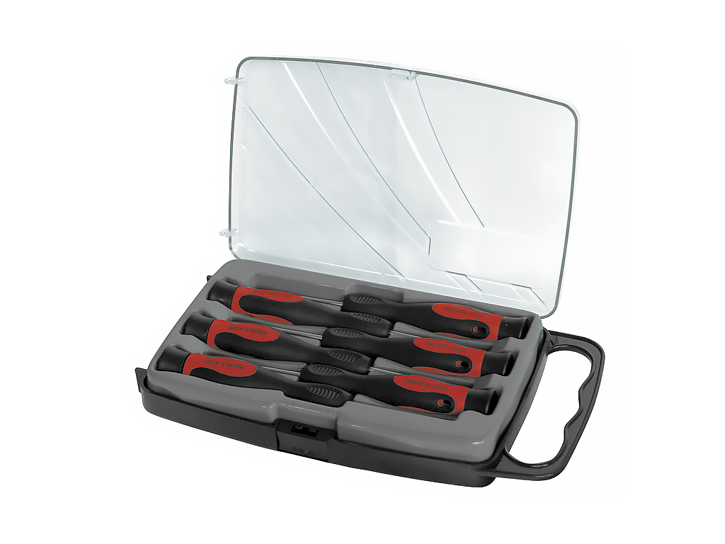 - Набор прецизионных отверток в пластиковом чемодане для хранения.